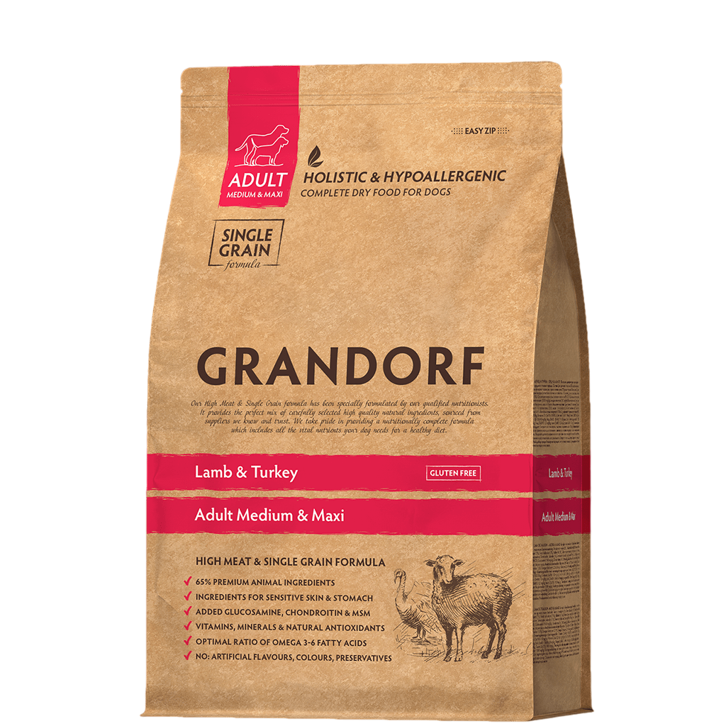 ГРАНДОРФ DOG Lamb&Turkey MED&MAXI Ягненок с индейкой Сухой корм для взрослых собак средних и крупных пород [уценка] (1 кг)